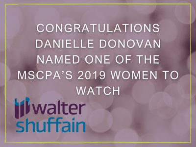 Congratulations to W&S Supervisor Danielle Donovan named one of the MSCPA’s 2019 Women to Watch
